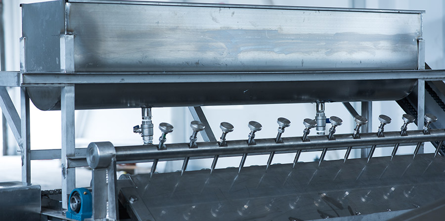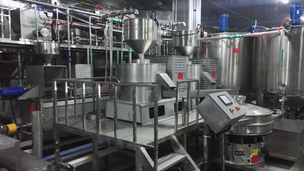 本生產(chǎn)線的調(diào)漿罐裝有攪拌裝置,在定量粉體喂料機(jī)的配合下將米漿調(diào)整到合適的狀態(tài),并防止米漿沉淀。本機(jī)的儲漿罐配有液位計(jì)和攪拌裝置,保證漿液不發(fā)生沉淀,布漿均勻。