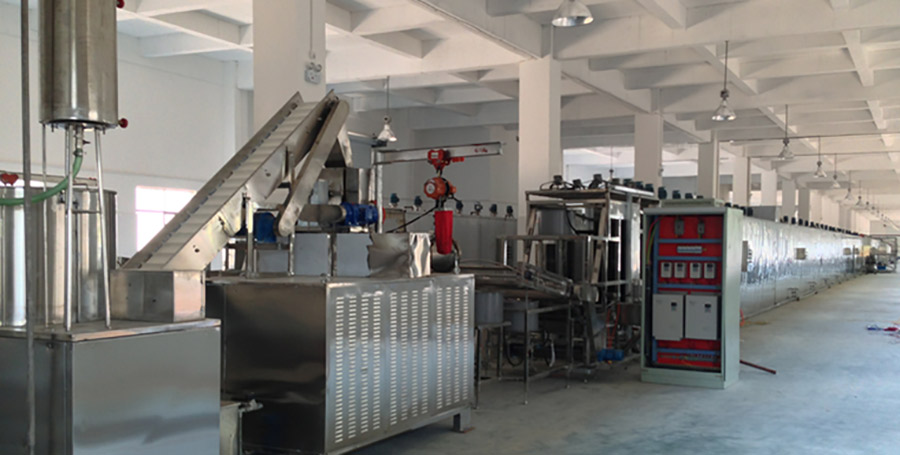 本生產(chǎn)線科學(xué)地解決了雜糧面雜糧含量較低的難題,實現(xiàn)了100%雜糧生產(chǎn)雜糧掛面冷面面條。本設(shè)備拓展了擠壓膨化理論,將擠壓設(shè)備和成型、預(yù)干燥、干燥設(shè)備有機(jī)的結(jié)合在一起,實現(xiàn)了在線調(diào)整生產(chǎn)工藝參數(shù),達(dá)到了工業(yè)化生產(chǎn)雜糧的目的。生產(chǎn)出的掛面產(chǎn)品口感滑爽、彈性好,同時保留了原料的風(fēng)味和營養(yǎng)成份。