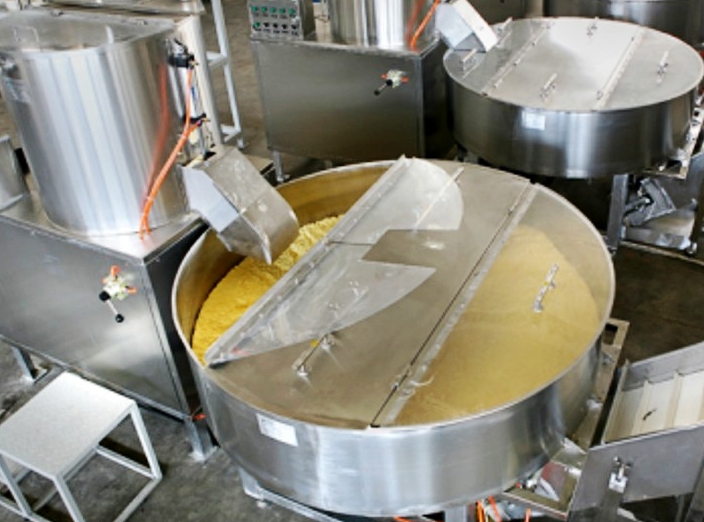 通過餳面機(jī)的不停攪拌使面團(tuán)中的水分更均勻,并自動提升到下一工序, 設(shè)備可實現(xiàn)供料系統(tǒng)的自動控制;