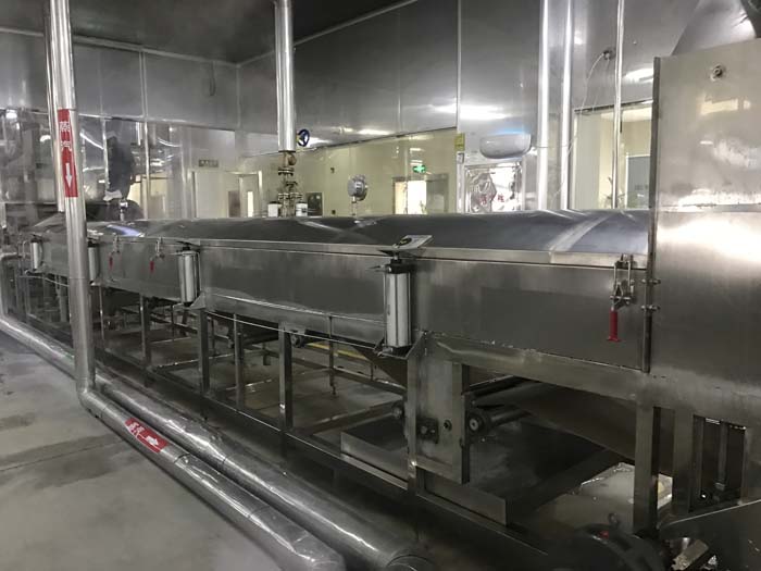 為了延長鮮米粉的保質(zhì)期,包裝好的米粉需要進行巴氏滅菌。 通過蒸汽完成最后的殺菌后進入到冷卻。