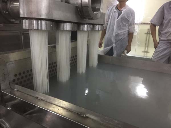 快速的煮粉后米粉由網(wǎng)帶輸送至連續(xù)蒸粉機,蒸后的米粉達到完全熟化。